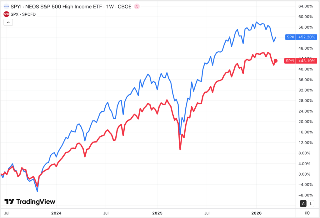 However, once the S&P 500 starts rising quickly, like in 2024, SPYI can’t keep up.