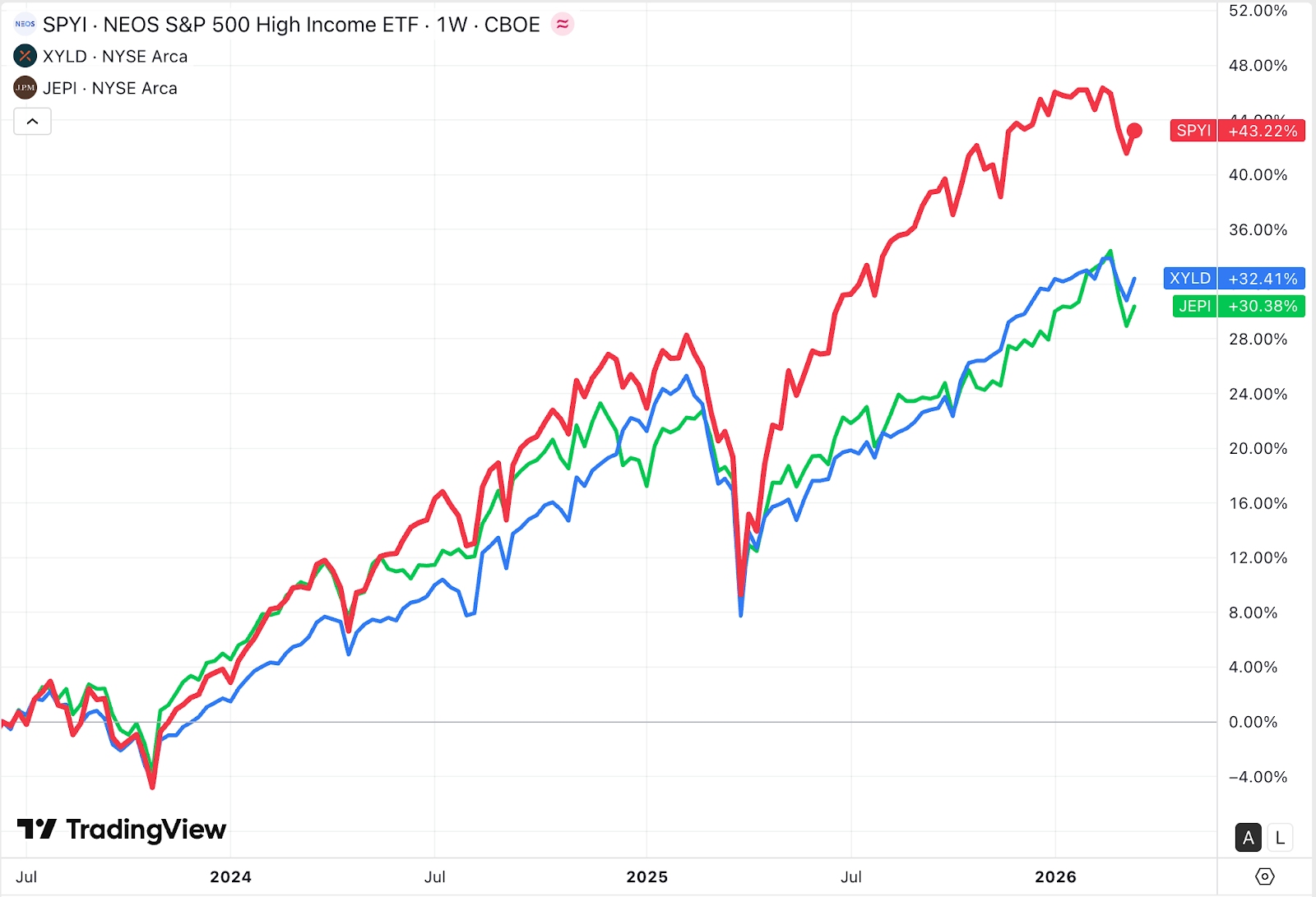 NEOS S&P 500 High Income ETF (ticker: SPYI) only started in 2022.