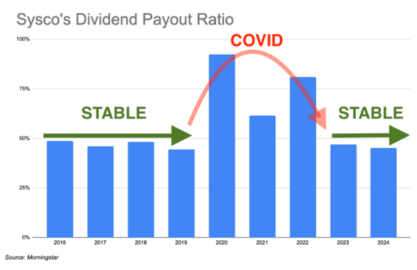 Outside of COVID, the payout ratio for Sysco typically hovers between 40-50%.