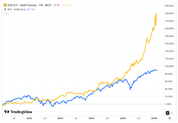 In the last 5 years, the price of gold has gone up over 240%.