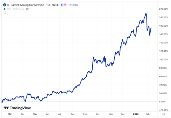 At one point, Barrick was up over 200% since last February.