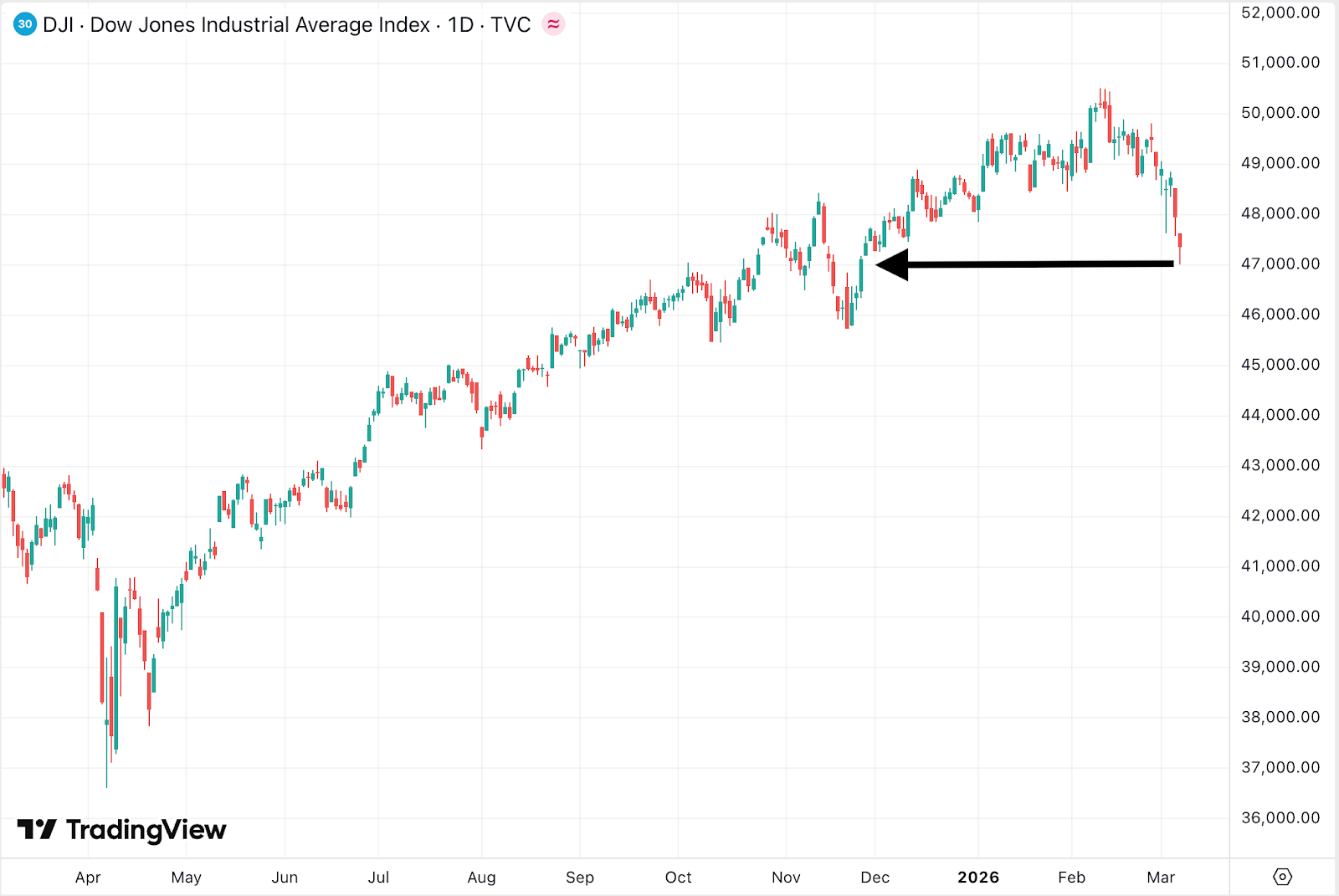 While it’s true the markets are down a lot for the week, the Dow is trading at prices seen only 3 months ago.