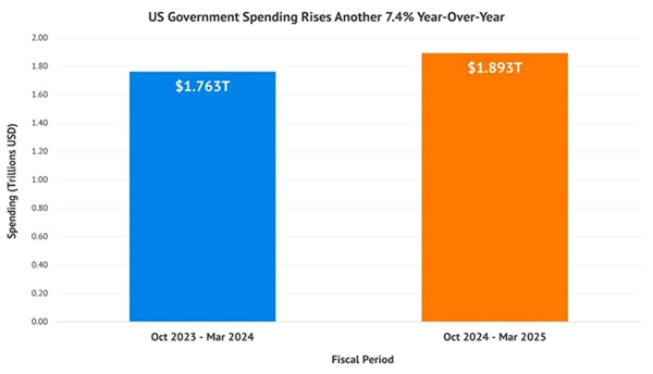 With such a small austerity target, it’s no wonder that government spending is up 7.4% year-over-year for the first six months of this fiscal year (which began October 1, 2024):