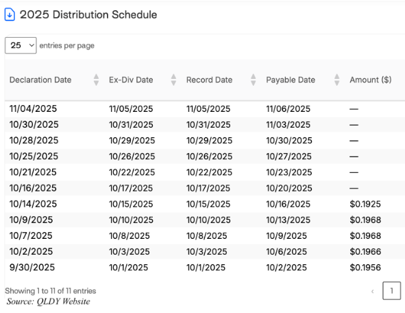 By the time you finish reading, QLDY will have made 6 dividend payments.