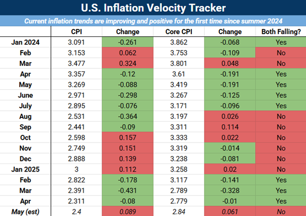 But here’s the real kicker: April’s soft inflation print wasn’t just a sign of easing price pressures. To us, it was a death knell for what had been the market’s biggest fear this spring: tariff-driven reinflation.